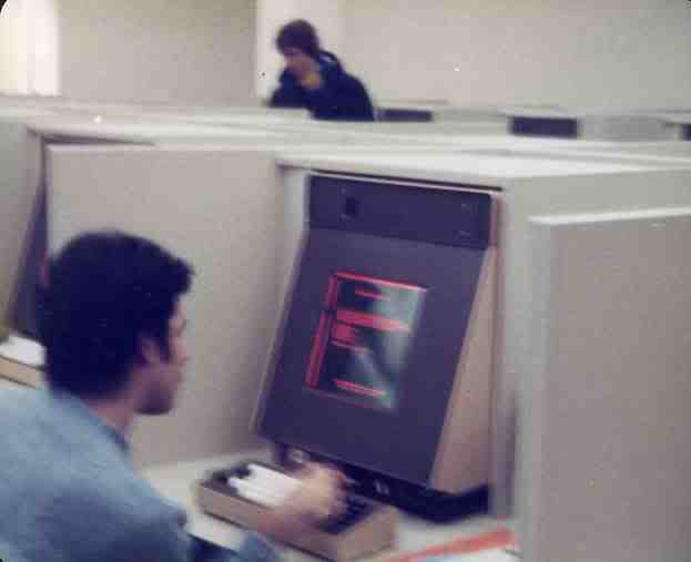 CERL 165 (the Zoo) showing 3 original Control Data IST terminals and